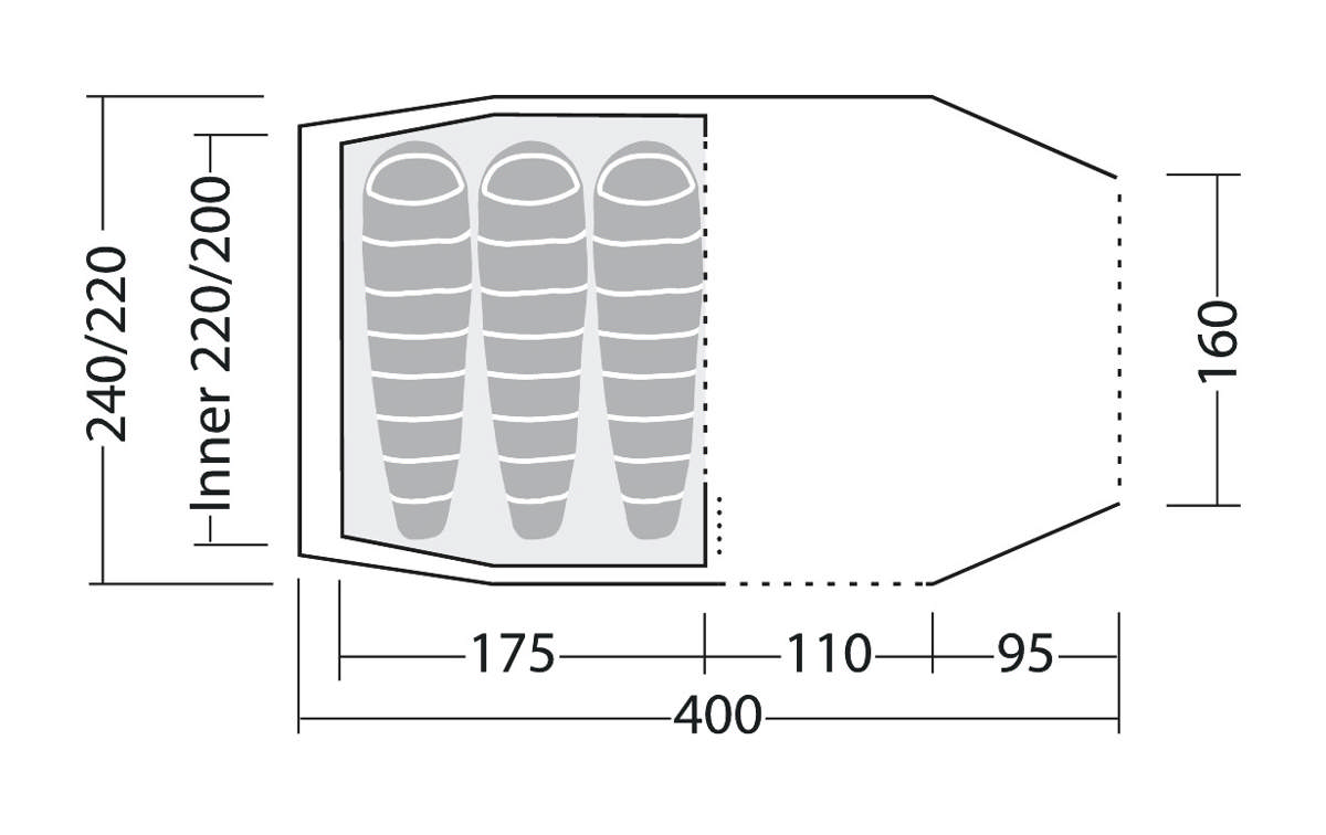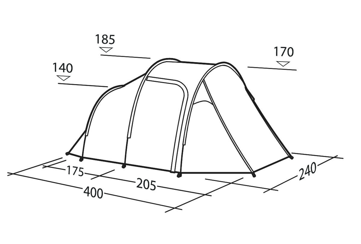 Spacious tunnel tent for three with 4000 mm hydrostatic head. Features include standing height, extended porch, mesh panels, and versatile entry options.