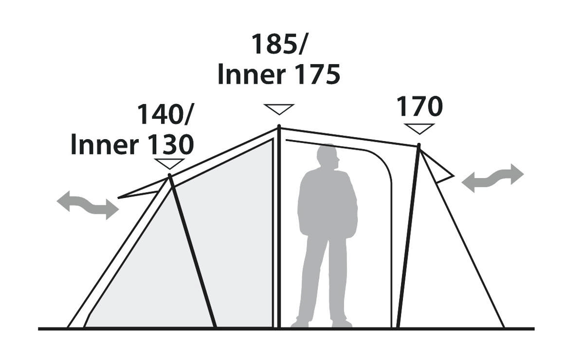 Cima Versa 3 is designed for ultimate comfort and versatility. With standing height in the living area and an extended porch for gear storage, cooking, and dining, this tent offers ample space. The front and rear can be toggled back for optimal ventilation, while a mesh window with an external curtain provides a covered ventilation option. The side door allows flexible access, and the door can be converted to a canopy with optional extra poles. The inner tent features mesh panels and organizer pockets both inside and out. Color-coded poles and adjustable pegging points with sturdy alloy buckles ensure easy setup.
