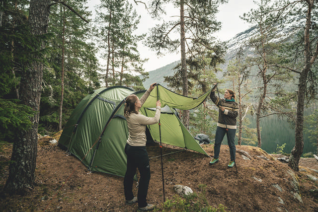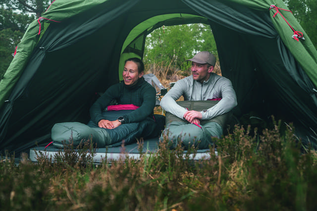 Alors que les tentes de trekking légères privilégient la mobilité, les tentes Fieldbase mettent l’accent sur le confort, l’espace et la facilité d’utilisation. La hauteur permettant de se tenir debout crée un environnement de vie plus naturel, les absides étendues ajoutent de la place pour le matériel et la cuisine, et les grandes portes facilitent les déplacements - idéal pour des journées détendues au camp ou des pauses forcées par la météo.