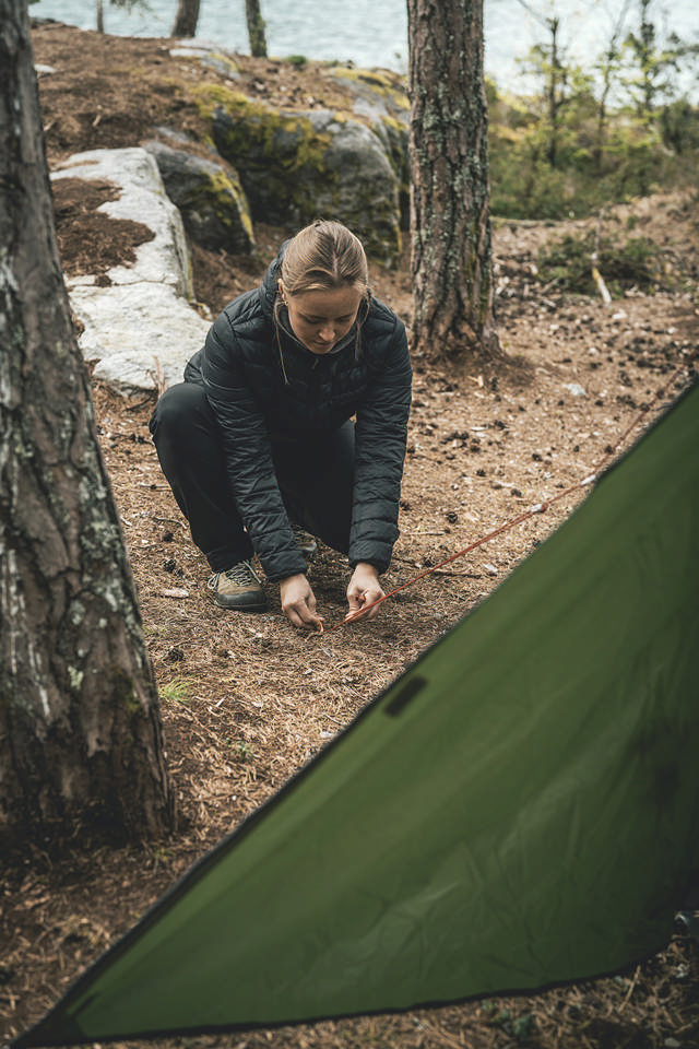 La gamme inclut également des piquets en profil V, fabriqués en aluminium anodisé pour un ancrage sûr dans des terrains variés. Leur tête crochetée assure une bonne tenue lors de la mise en tension des haubans, et leur couleur rouge caractéristique Robens les rend faciles à repérer dans l’herbe - un détail simple mais précieux lors du montage ou du démontage du camp.