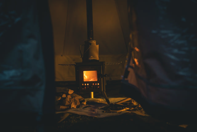 Hunter Tent Stove ger en effektiv värmekälla och levereras med flera skorstensektioner, fällbara ben, en bärväska och en eldstad med glasfront. För att skydda tältgolvet kan en Stove Ground Protector av brandresistenta material placeras under kaminområdet. Med korrekt uppsättning, ventilation och gnistskydd blir ett polycotton-tält ett pålitligt och komfortabelt fyrsäsongsskydd.
