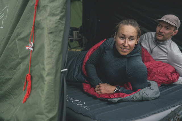 Dun återhämtar sig snabbt efter kompression, medan vissa syntetiska fyllningar behöver mer tid för att expandera helt och skapa ett isolerande lager av varm, instängd luft. Använd alltid ett lämpligt liggunderlag under sovsäcken för att isolera mot kall mark och skydda yttertyget från nötning eller smuts.