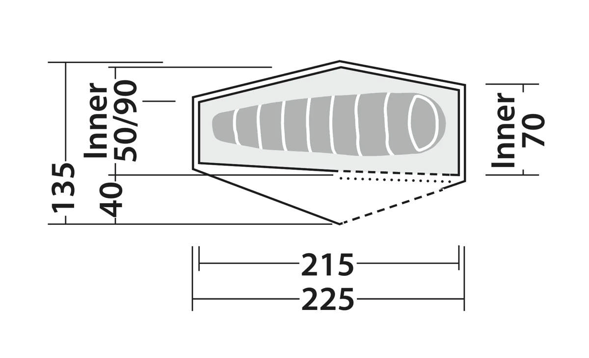 Lättviktig tunnel tent för en person, med en non-sag Hydrotex RS SilPoly yttertält. FlexPitch mångsidiga uppsättningsalternativ och optimal ventilation med mesh invändigt. DAC-stänger säkerställer stabilitet.