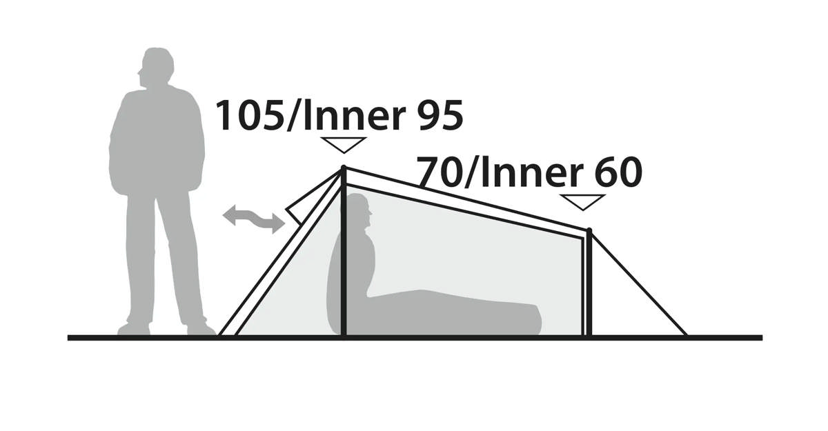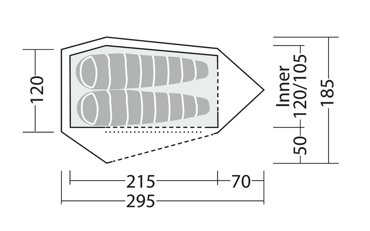 The Challenger 2 EXP uses our tried and tested side-entry sloping tunnel design to provide comfortable sleeping space with enhanced headroom for two people. Pack size and weight are kept to a minimum, making the tent optimal for both hiking and biking. Storage is maximised by offsetting the inner tent to give extra porch space, and there is also zip access from the inner to an additional storage area at the foot of the tent. Mesh pockets and a gear rope add to storage options. The updated Expert range features a recycled ripstop polyester fly (5000 mm), PFAS-free water repellent, and no fire-retardant treatment. It includes red V-pegs, a new grey pole design with shorter pack size, improved webbing, and fully taped vents. A redesigned carry bag with dual buckles allows compact storage and bike attachment. A new nature-blending colourway completes the update.
