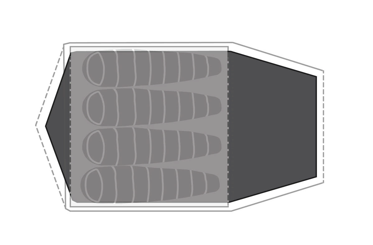 - Le plastique de protection Footprint gardera le tapis de sol de votre tente propre et vous aidera á la protéger des frottements ainsi que d‘eventuels dommages. II vous aide également á vous isoler du sol froid. Le Footprint doit être recouvert entiérement par la tente pour empêcher la pluie de creuser le sol.