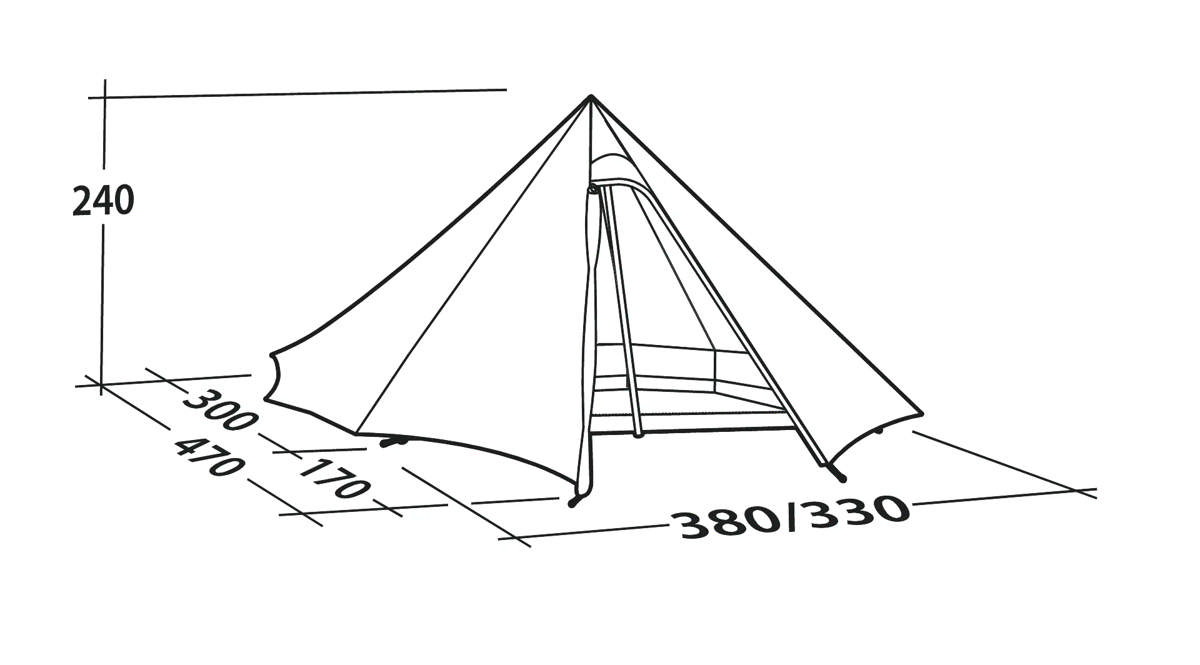 - Le mât central décalé diffère des modèles traditionnels et améliore l'espace et le confort de la tente intérieure.