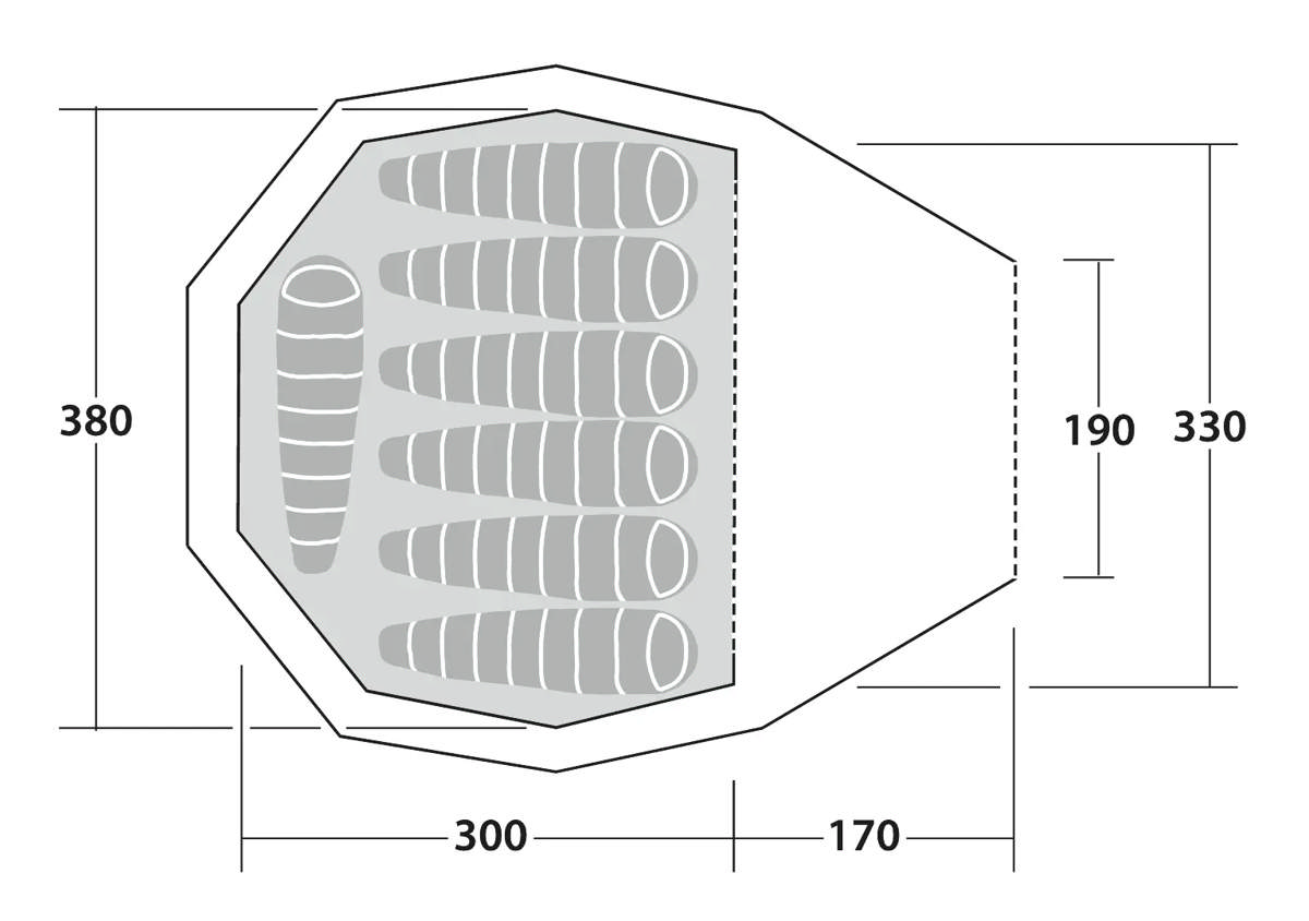 - Le Fairbanks Grande est un tipi simple paroi équipé d'avant-toits de protection qui s'étirent sur l'avant pour créer une abside, à laquelle on accède par une porte en forme d'arche à fermeture à glissière bidirectionnelle. Le mât unique en alliage solide utilisé offre un bon rapport résistance/poids et est idéal pour un montage rapide et facile. Sa légère inclinaison permet de faciliter l’accès et d’optimiser l'espace intérieur utile qui peut accueillir jusqu'à sept personnes et permet la station debout en son sommet. La conception d'aération en filet sommitale protégée par un capuchon, l'aération au sol et la porte en filet séparée garantissent une circulation de l’air exempte d’insectes.
