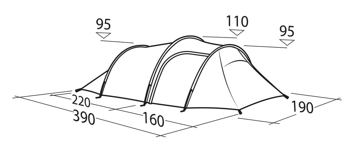 Tente tunnel pour 3 personnes avec une colonne d’eau de 4000mm. Spacieuse, stable et facile à monter grâce à des arceaux codés par couleur.