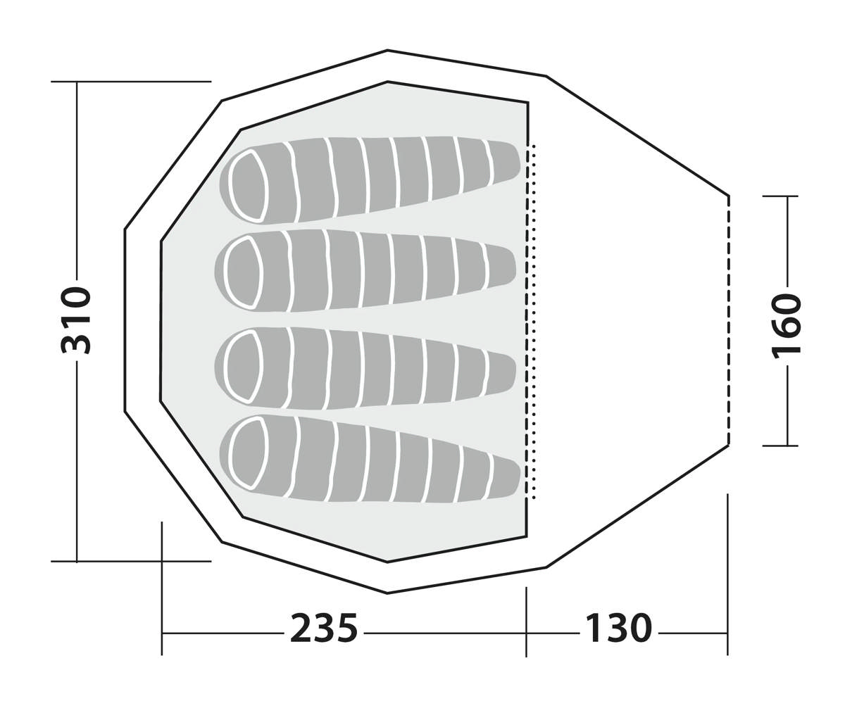- Tente intérieure entièrement en filet pour une ventilation optimale et un poids réduit