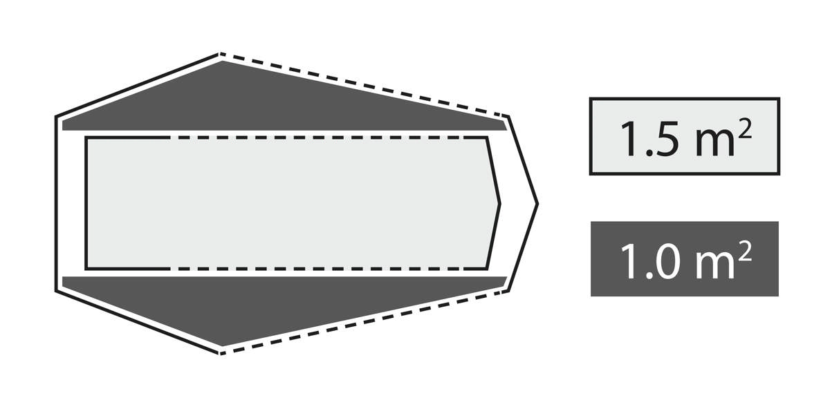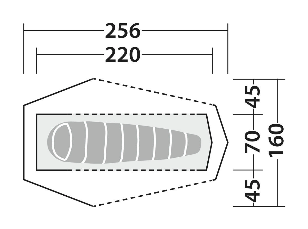 - Verticale eindwand - Carbon fiber stutontwerp maximaliseert de ruimte en houdt je slaapzak droog.