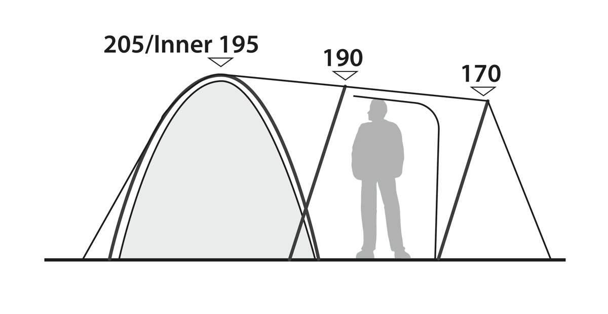 - Voor- en achteringang met flexibele deurmogelijkheden voor snelle en regenveilige toegang tot de binnentent.